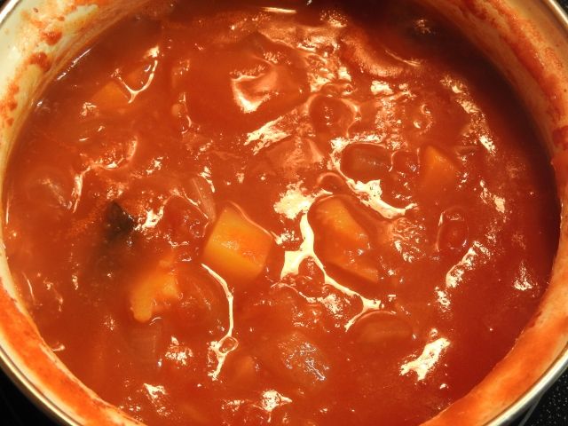 家に着いたら、トマト煮の中にうどんが入ってて、ちょっとカルチャーショック